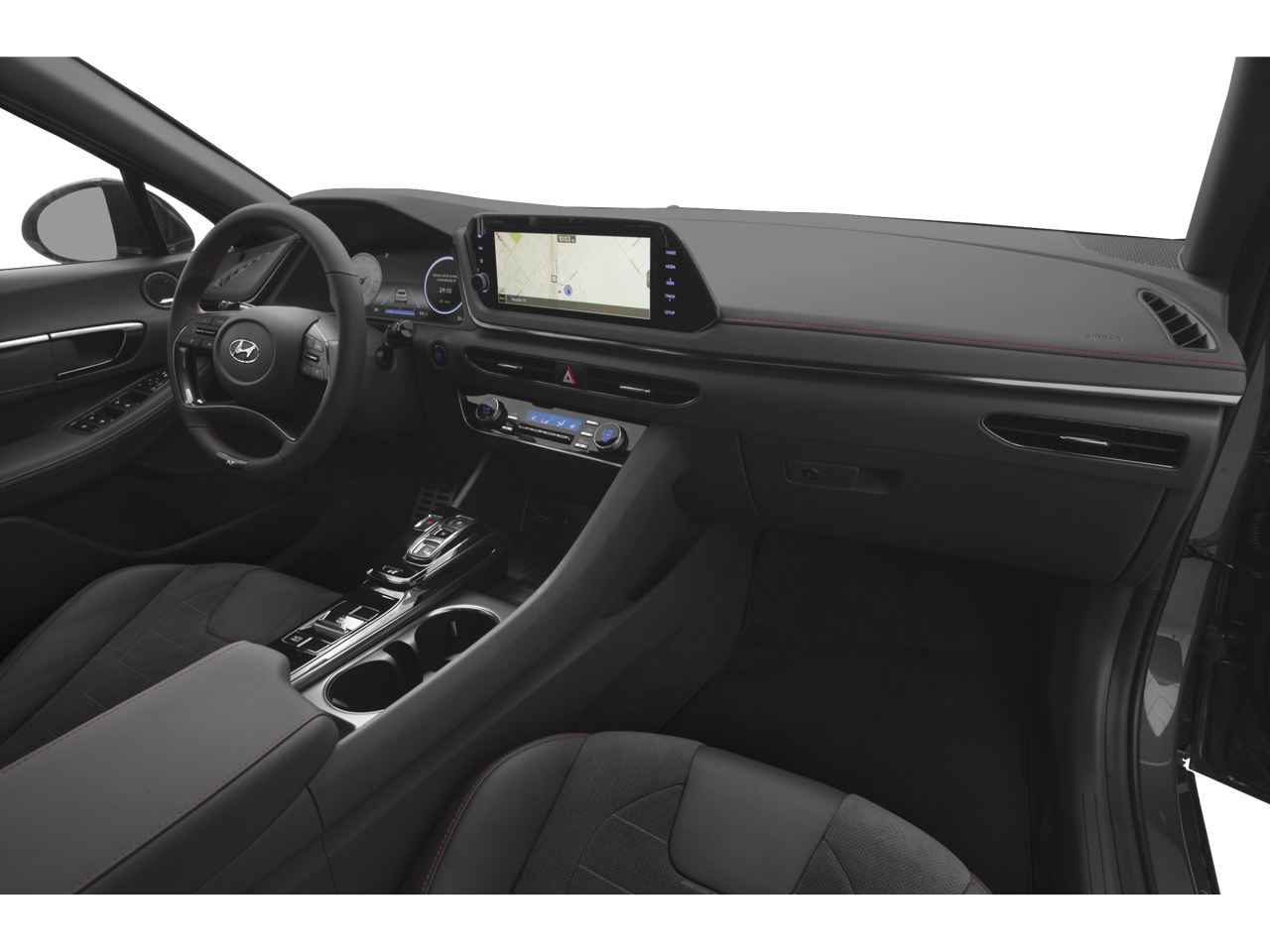- Radio: AM/FM/MP3/HD/SiriusXM Display Audio w/Nav -inc: 10.25" color touchscreen, Bose premium audio w/12 speakers (1 center channel, 2 dash, 2 front tweeters, 4 door mounted, 2 rear mounted speakers plus 1 rear mounted subwoofer), dynamic voice recognition, integrated Bluetooth®, Blue Link connected car system, Apple CarPlay, Android Auto, USB, diversity antenna for navigation and HERE HD traffic